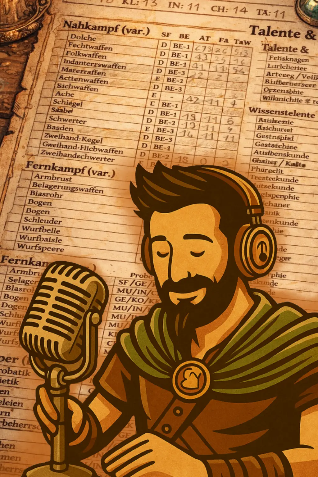 In der neuen Folge von Der Rollenspieler geht es um Talente, Fertigkeiten und den stetig wachsenden Berg an Werten auf unseren Charakterbögen. Welche Talente werden am Spieltisch tatsächlich genutzt, welche bleiben ungewürfelt und warum landet man irgendwie immer wieder bei Wahrnehmungsproben? Ausgehend von einer Spielrunde in der Borbaradkampagne, werfe ich einen Blick auf die praktische Relevanz von Talenten im laufenden Spiel.